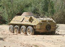 The BTR-60 is the first vehicle in a series of Soviet eight-wheeled armoured personnel carriers (APCs). It was developed in the late 1950s as a replacement for the BTR-152 and was seen in public for the first time in 1961. BTR stands for Bronetransporter (БТР, Бронетранспортер, literally "armoured transporter").[13]