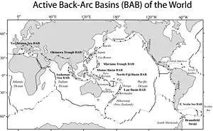 - ^ a b c d e Sdrolias, M; Muller, R.D. (2006). "Controls on back-arc basin formations". Geochemistry, Geophysics, Geosystems. 7 (4): Q04016. Bibcode:2006GGG.....7.4016S. doi:10.1029/2005GC001090.