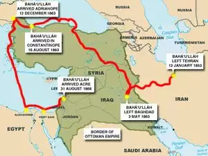 Baháʼu'lláh was given an order to relocate to the Ottoman capital of Constantinople. Although not a formal prisoner yet, the forced exile from Baghdad was the beginning of a long process which would gradually move him into further exiles and eventually to the penal colony of Acre, in Ottoman province Syria.