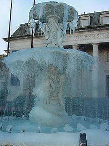 Bahía Blanca's climate is subtropical and characterized by wide variations in temperatures.[32] It is influenced by the location of the city by the ocean with warm superficial streams by the shores. Winters are characterized by cool temperatures during the day with cold nights.[33] The mean temperature during winter is 8 °C (46.4 °F).[34] Temperatures can fall below 0 °C (32.0 °F) although snowfalls are rare, averaging 0.2 days of snow per year.[35][36] The last significant snowfall took place recently in July 2009. The one before was in May 2007, although it sometimes does snow in Sierra de la Ventana. On average, there are 35 days with frost, most of it occurring in June–August.[32] Winters are characterized by cloudy and damp weather, averaging 9–11 overcast days.[33][37]