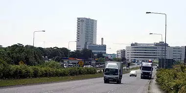 Ballymun (Irish: Baile Munna) is an outer suburb of Dublin, Ireland, at the northern edge of the Northside, the development of which began in the 1960s to accommodate a housing crisis in inner city areas of Dublin. The area became well known for its high-rise tower blocks and flat complexes. It has several sub-districts such as Sillogue, Coultry, Shangan and Poppintree, and is in close proximity to Dublin Airport.