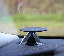 In 2003, B&O entered into an agreement with Audi to provide an advanced sound system[11] and in 2005 a sound system based on the BeoLab 5 with 1000 W amplifiers became available to Audi's flagship model, the A8.[12] Audi markets this sound system using the Bang & Olufsen brand name. A unique feature of this sound system is its motorized tweeters that emerge from the dashboard when the sound system is turned on.