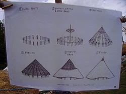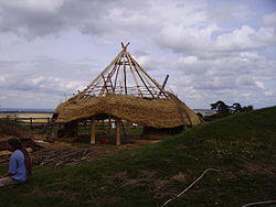 In 1996 a geophysical survey revealed traces of 40 hut circles inside the castle.[4] A reconstruction of an Iron Age roundhouse was built on the site in 2006 but was destroyed by vandals in October 2008.