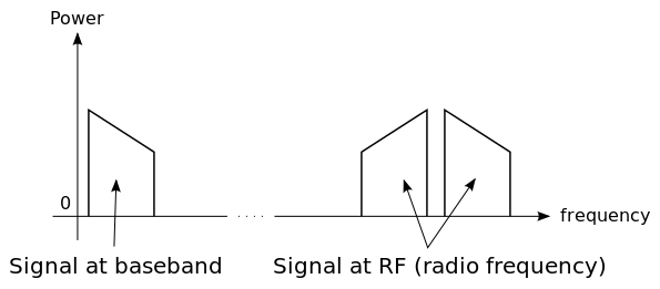 A signal at baseband is often used to modulate a higher frequency carrier signal in order that it may be transmitted via radio. Modulation results in shifting the signal up to much higher frequencies (radio frequencies, or RF) than it originally spanned. A key consequence of the usual double-sideband amplitude modulation (AM) is that the range of frequencies the signal spans (its spectral bandwidth) is doubled. Thus, the RF bandwidth of a signal (measured from the lowest frequency as opposed to 0 Hz) is twice its baseband bandwidth. Steps may be taken to reduce this effect, such as single-sideband modulation. Some transmission schemes such as frequency modulation use even more bandwidth.