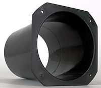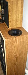 A bass reflex system (also known as a ported, vented box or reflex port) is a type of loudspeaker enclosure that uses a port (hole) or vent cut into the cabinet and a section of tubing or pipe affixed to the port. This port enables the sound from the rear side of the diaphragm to increase the efficiency of the system at low frequencies as compared to a typical sealed- or closed-box loudspeaker or an infinite baffle mounting.