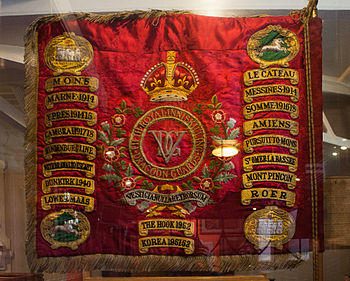 The Royal Canadian Mounted Police, although a civilian police force, was awarded the status of a dragoon regiment by King George V following the service of many of its members during the First World War. As a consequence, it then became entitled to display the many honours it had won dating back to 1885: