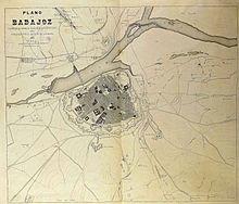 By 8 April new bridges had been thrown across the Guadiana and the following day Beresford's army moved to Olivenza; they were now over the border and 24 kilometres (15 mi) south of Badajoz. While the British 4th Division tackled the small French garrison there, the main Allied army followed Latour-Maubourg south while sending covering forces to watch the Badajoz garrison from Valverde and Albuera.[36] Beresford coordinated his movements with the remnants of the Spanish Army of Extremadura (now under the command of General Castaños), adding 3,000 infantry and 1,000 cavalry to his strength. On 15 April, Olivenza fell to the 4th Division, which technically put Beresford in a position to commence the more important task of besieging Badajoz.[36] However, neither Beresford nor Wellington had provided a siege-train for the expedition, so one had to be improvised on the spot. The solution adopted was to take sufficient artillery pieces of various qualities and vintages from the fortress of Elvas, but this expedient caused yet another delay in Allied progress.[37] Beresford took the opportunity presented by this delay to have his forces clear southern Extremadura of French forces and Latour-Maubourg was pushed back to Guadalcanal.[38] Beresford left his cavalry and a brigade under Lieutenant Colonel John Colborne, along with a detachment of Spanish horse, to watch Latour-Maubourg's movements and dissuade him from returning to Extremadura.[39] Wellington was so concerned by the lack of progress that he decided to pay a flying visit to the region.[40] He and Beresford conducted a reconnaissance of Badajoz on 22 April and by the time he left for the north, he had prepared for Beresford a detailed set of memorandum concerning how he should conduct the impending siege and the rest of the campaign.[41] Beresford followed the instructions slowly but surely and finally began the Siege of Badajoz on 4 May.[42]