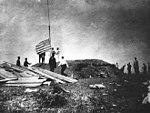 Another means by which historic battles are commemorated is historical reenactment. Such events are typically held at the location of the original battle, but if circumstances make that inconvenient, reenactors may replicate the battle in an entirely different location. For example, in 1895, members of the Gloucestershire Engineer Volunteers reenacted their famous stand at Rorke's Drift in Africa, 18 years earlier, with the reenactment occurring at the Cheltenham Winter Gardens in England.[15] The first documented Korean War reenactment was held in North Vernon, Indiana, by members of the 20th Century Tactical Studies Group portraying Canadian and North Korean troops, on March 15, 1997.[16]