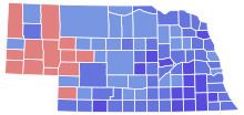 Nelson defeated Ricketts 64%-36%, the biggest victory margin for a Democratic Senate candidate in Nebraska since Edward Zorinsky won 66% of the vote in 1982.[25] In doing so, he received the votes of 42% of Republicans and 73% of Independents on top of 96% of those from his own party. He also won all but 13 counties in the western part of the state, a surprising feat in normally heavily Republican Nebraska.[26][27]