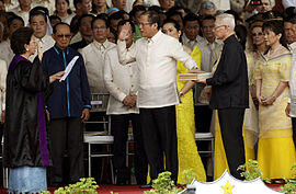 - ^ a b "Lady justice to administer Aquino oath". INQUIRER.net. June 19, 2010. Archived from the original on October 12, 2014.