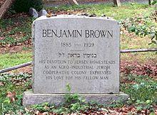 Benjamin Brown (née Lipshitz), (1885 – 1939), was a Ukrainian-Jewish immigrant to the United States, a social idealist who developed a Jewish Agricultural cooperative settlement in Clarion, Utah and an Agro-Industrial cooperative settlement in Jersey Homesteads, Roosevelt, New Jersey.[1] Brown attained wealth through a poultry exchange he established between Western states and New York after the failure of the Clarion effort in 1916. In 1933, Brown attempted to reestablish a new Jewish cooperative effort in rural Monmouth County, N.J. employing seasonally employed Jewish textile workers largely from New York City.