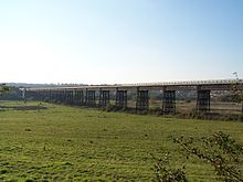 Bennerley Viaduct is a disused railway viaduct spanning the Erewash Valley between Awsworth (Nottinghamshire) and Ilkeston (Derbyshire) in central England. Restoration work to create a public walkway scheduled to start from March 2020 was quickly suspended due to industry lockdown caused by the COVID-19 pandemic.[1][2][3] Bennerley was built in 1877 but closed to rail traffic in 1968, as part of the Beeching cuts. It was sold to conservation group Railway Paths Ltd in 1998.[4]
