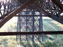 - The only similar viaduct in the United Kingdom was the Halesowen Joint Railway's Dowery Dell (Hunnington or Frankley) Viaduct demolished in 1964.[13] Other apparently similar structures were usually Warren Trusses, or (as in the case of Kew Railway Bridge), supported on cast iron cylindrical columns rather than wrought iron piers.