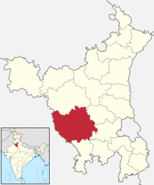 Bhiwani District is one of the 21 districts of Haryana state in northern India. Created on 22 December 1972, the district is largest district of state by area which occupies an area of 5,140 square kilometres (1,980 sq mi) and administers 442 villages with a population of 1,629,109. The district headquarters is the city of Bhiwani, which is around 124 kilometres (77 mi) from the capital Delhi. Other major towns in the district are Siwani, Charkhi Dadri, Loharu, Tosham, Bawani Khera and Badhra.[1]