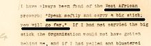 I have always been fond of the West African proverb: "Speak softly and carry a big stick; you will go far."