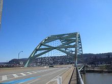 The Birmingham Bridge (known during construction as the Brady Street Bridge[2]) is a bowstring arch bridge in Pittsburgh, Pennsylvania, which crosses over the Monongahela River. The bridge connects East Carson Street on the South Side with Fifth and Forbes Avenues going to Uptown, Oakland, and the Hill District. It is named in honor of the English city of Birmingham and also for the neighborhood it connects to, which was once called Birmingham, now a part of the South Side. Many locals also may refer to it with its unofficial name, the 22nd Street bridge.