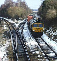 The Nuneaton North Chord was completed and opened on 15 November 2012.[17] The chord allows freight traffic approaching Nuneaton from Felixstowe via the Birmingham–Peterborough line to proceed north on the West Coast Main Line without conflicting with southbound main-line trains.[18] It consists of a one-mile chord from the existing flyover over the West Coast Main Line to join the line to the north.[19] The cost of this work was £25.6 million.[10] A Transport & Works Act Order for the Nuneaton North Chord was granted by the Secretary of State for Transport in July 2010.[20] Work began in mid-2011.[18]
