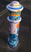 Many other towns, such as Winchester, England and Pristina, Kosovo, have painted ordinary bollards in unusual decorative patterns. See the "External links" section for pointers to Wikimedia Commons for examples.