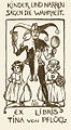 A sketch of the history of the bookplate, as a symbolical and decorative print used to mark ownership of books, begins in Germany. The earliest examples known are German, but also they are found in great numbers long before the fashion spread to other countries, and are often of the highest artistic interest. Albrecht Dürer is known to have engraved at least six plates (some quite large) between 1503 and 1516, and to have supplied designs for several others. Notable plates are ascribed to Lucas Cranach and to Hans Holbein, and to the so-called Little Masters (Masters of the small format—the Behams, Virgil Solis, Matthias Zundt, Jost Amman, Saldorfer, Georg Hupschmann and others). The influence of these draftsman over the decorative styles of Germany has been felt through subsequent centuries down to the present day, notwithstanding the invasion of successive Italian and French fashions during the 17th and 18th centuries, and the marked effort at originality of composition observable among modern designers. The ornate and elaborate German style does not seem to have affected neighbouring countries; but as it was undoubtedly from Germany that the fashion for ornamental bookplates spread, the history of German ex-libris remains of great interest to all those who are interested in their development.[14]