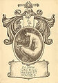 From the beginning of the 19th century, no special style of decoration seems to have established itself. The immense majority of examples display a plain shield of arms with motto on a scroll, and crest on a fillet. At the turn of the 20th century, however, a rapid impetus appears to have been given to the designing of ex-libris; a new era, in fact, had begun for the bookplate, one of great interest.[20]