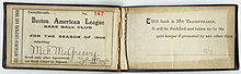 For years many sources have listed "Pilgrims" as the early Boston AL team's official nickname, but researcher Bill Nowlin has demonstrated that the name was barely used, if at all, during the team's early years.[15] The origin of the nickname appears to be a poem entitled "The Pilgrims At Home" written by Edwin Fitzwilliam that was sung at the 1907 home opener ("Rory O'More" melody).[16] This nickname was commonly used during that season, perhaps because the team had a new manager and several rookie players. John I. Taylor had said in December 1907 that the Pilgrims "sounded too much like homeless wanderers."