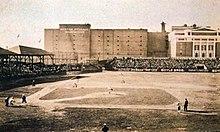 The upstart league placed franchises in Baltimore, Maryland and Buffalo. After looking at his new league, Ban Johnson decided that he needed a team in Boston to compete with the National League team there, and so cancelled the Buffalo club's franchise, offering one to a new club in Boston. The Boston franchise was purchased in 1903 by Milwaukee publisher, George Brumder who sold the team one year later.[21] Playing their home games at Huntington Avenue Grounds, the Boston franchise finished second and third before capturing their first pennant in 1903 and repeating the next year. Those teams were led by manager and star third baseman Jimmy Collins, outfielders Chick Stahl, Buck Freeman, and Patsy Dougherty, and pitcher Cy Young, who in 1901 won the pitching Triple Crown with 33 wins (41.8% of the team's 79 wins), 1.62 ERA and 158 strikeouts.[22] His 1901 to 1904 seasons rank among the best four-year runs ever.