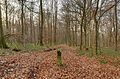 German forest boundary stone set up in 1754; it marks one end of a line of 65 boundary stones between the Hanoverian state forest and the woods held in common by local villages. The border was marked in 1750 by order of George II of Great Britain who was also Elector of Hanover at that time.