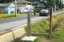 Modern boundary marker on the 49th parallel north designating the border between the United States and Canada.