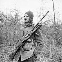 In the British and Commonwealth armies, the Bren was generally issued on a scale of one per rifle section.[8] An infantry battalion also had a "carrier" platoon, equipped with Universal Carriers, each of which carried a Bren gun.[9] Parachute battalions from 1944 had an extra Bren in the AT platoon.[10] The 66-man "Assault Troop" of British Commandos had a nominal establishment of four Bren guns. Realising the need for additional section-level firepower, the British Army endeavoured to issue the Bren in great numbers, with a stated goal of one Bren to every four private soldiers.[[[Wikipedia:Citing_sources|
