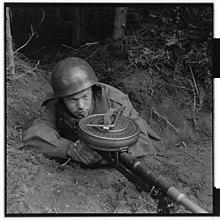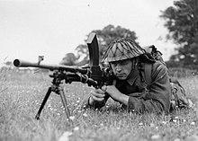 The Bren gun was a series of light machine guns (LMG) made by Britain in the 1930s and used in various roles until 1992. While best known for its role as the British and Commonwealth forces' primary infantry LMG in World War II, it was also used in the Korean War and saw service throughout the latter half of the 20th century, including the 1982 Falklands War. Although fitted with a bipod, it could also be mounted on a tripod or be vehicle-mounted.