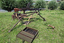 The Bren was also employed in the anti-aircraft role. The tripod could be adjusted to allow high angle fire. There were also several designs of less-portable mountings, including the Gallows and Mottley mounts. A 100-round pan magazine was available for the Bren for use in the anti-aircraft role.[19] The Bren's direct ancestor, the Czechoslovak ZB vz. 26, was also used in World War II by German and Romanian forces, including units of the Waffen SS. Many 7.92 mm ZB light machine guns were shipped to China, where they were employed first against the Japanese in World War II, and later against UN forces in Korea, including British and Commonwealth units. Some ex-Chinese Czech ZB weapons were also in use in the early stages of the Vietnam War. Production of a 7.92 mm round model for the Far East was carried out by Inglis of Canada. The Bren was also delivered to the Soviet Union as part of the lend-lease program[20]