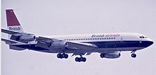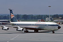 Following the corporations' intervention, BEA Airtours acquired seven former BOAC Boeing 707-436s.[13][14][15][16][17] These aircraft had a greater seating capacity than required and were powered by four Rolls-Royce Conway engines, an older generation engine type than the four Pratt & Whitney JT3D turbofans which powered the ex-American 707-123Bs it had originally selected to replace its Comet fleet. This meant that the ex-BOAC 707s had higher operating costs. However, BOAC was prepared to sell these aircraft to BEA Airtours at a lower price than American was asking for its planes. The £4.3m sale price included BOAC's entire spares holding (inclusive of engines) for the seven aircraft.[18] This helped compensate for the cost differential. The first of these 174-seat aircraft entered service in 1971 while the last aircraft of this batch joined the fleet in 1973.[17] By that time, four of the airline's nine Comet 4Bs had already been withdrawn from service and sold to rival British charter airlines.[14]