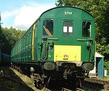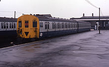 A number of units survived for a few years longer on non-passenger duties as test or tractor units. One was used for testing the Tonbridge - Hastings line electrification before the route was opened for electric trains in the summer of 1986 by British Rail. This unit also carried out similar work on the East Grinstead electrification two years later and saw occasional use on other test and tractor duties until laid up in 1995. It was purchased for preservation by SERA and was moved to Robertsbridge in Sussex for initial restoration work, and moved to the Electric Railway Museum, Warwickshire in 1999. Two DMBS from two different units (5783 and 5790) were rebuilt as departmental set 026 (later 931062), with roller shutter doors on each side and tanks inside to carry carriage cleaning fluid and de-icing fluid between the supply point and depots.[5] This unit, nicknamed The Sprinkler, was in service from 1987 until 2002 and was the last Tyneside unit in use, albeit heavily modified from original form.