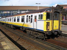 One vehicle, no. 76112 from 'Phase 1' 4Cig unit 1749 was rebuilt as a prototype in 1997. This saw the original Mark 1 bodyshell removed from the chassis at Doncaster Works, and replaced with a new one at Derby Litchurch Lane Works resembling a then brand new Turbostar train installed.[1][2] The controls from the 4Cig unit were retained in the driving cab.[3] It was displayed to the public at London Victoria, paired with unrebuilt DT 76747 from 4Big unit 2256 for comparison purposes.[4] The converted vehicle had a total capacity of 77 passengers in Standard Class only; had the full 4-car unit undergone the same conversion, then it would have had capacity for up to 310 passengers.[5]