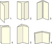 Other brochure fold arrangements are possible: the accordion or "z-fold" method, the "c-fold" method, etc. Larger sheets, such as those with detailed maps or expansive photo spreads, are folded into four, five, or six panels. When two card fascia are affixed to the outer panels of the z-folded brochure.