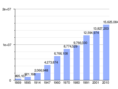 | Vertical bar chart demographic of Buenos Aires population between 1869 and 2010 |