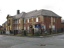 The school outgrew its premises and, in 1903, the boys moved into the completed half of a new building on Tenterden Street, with playing fields across Bridge Road. The new buildings, of Accrington brick, were designed in a simple Neo-Renaissance style by William Venn Gough.[9](The playing fields were a bone of contention from the first. One writer noted in an early edition of "The Clavian" that the young folks of Bury refused to recognize our right to the ground.[10]