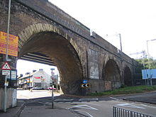 During the war years of 1939-1945 the station was often known as "Ampersand" - this was due to a typically bureaucratic application of emergency regulations. To hinder enemy troops in the event of an invasion it was ordered that all station names should be painted out on station name-boards, and this was interpreted at Bushey & Oxhey to mean the words 'Bushey' and 'Oxhey' but not the '&'. For the duration of the war, therefore, the station bore the designation '&'.[2] Also during wartime a concrete pillbox (a small gun fortification) was provided under the viaduct, between platforms 2 and 3.
