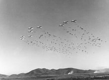 In December 1950, after People's Republic of China Expeditionary People's Volunteer Army troops blew up a bridge [N 1]at a narrow point on the evacuation route between Koto-ri and Hungnam, blocking the withdrawal of U.N. forces, eight U.S. Air Force C-119 Flying Boxcars flown by the 314th Troop Carrier Group.[5][N 2] were used to drop portable bridge sections by parachute. The bridge, consisting of eight separate sixteen-foot long, 2,900-pound sections, was dropped one section at a time, using two parachutes on each section. Four of these sections, together with additional wooden extensions were successfully reassembled into a replacement bridge by Marine Corps combat engineers and the US Army 58th Engineer Treadway Bridge Company, enabling U.N. forces to reach Hungnam.