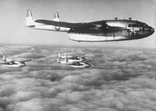Perhaps the most remarkable use of the C-119 was the aerial recovery of balloons, UAVs, and even satellites. The first use of this technique was in 1955, when C-119s were used to recover Ryan AQM-34 Firebee unmanned targets.[6] The 456th Troop Carrier Wing, which was attached to the Strategic Air Command (SAC) from 25 April 1955 – 26 May 1956, used C-119s to retrieve instrument packages from high-altitude reconnaissance balloons. C-119s from the 6593rd Test Squadron based at Hickam Air Force Base, Hawaii performed several aerial recoveries of film-return capsules during the early years of the Corona spy satellite program. On 19 August 1960, the recovery by a C-119 of film from the Corona mission code-named Discoverer 14 was the first successful recovery of film from an orbiting satellite and the first aerial recovery of an object returning from Earth orbit.[7]