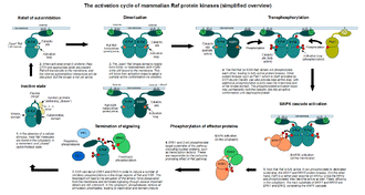 - ^ Chong H, Guan KL (September 2003). "Regulation of Raf through phosphorylation and N terminus-C terminus interaction". J. Biol. Chem. 278 (38): 36269–76. doi:10.1074/jbc.M212803200. PMID 12865432.