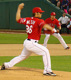 In 2011, Wilson was 16–7 with a 2.94 ERA (seventh in the AL).[7] He led the league in games started (34), and was fourth in wins, fifth in win-loss percentage (.696), and sixth in strikeouts (206; sixth-most in Rangers history).[7][9]