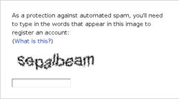 A CAPTCHA (/kæp.tʃə/, a contrived acronym for "Completely Automated Public Turing test to tell Computers and Humans Apart") is a type of challenge–response test used in computing to determine whether or not the user is human.[1]
