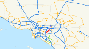 In 1933, a road from Brea to Chino was added to the state highway system.[9] It was designated as Route 177 in 1935.[10] In the 1964 state highway renumbering, this became part of SR 142.[11] A routing from Chino to Upland was added to the state highway system as Route 274 in 1959,[12] and was added to SR 142 in the 1964 renumbering from SR 71 to SR 30 (later SR 210),[11][13] but no highway has been built along that route.