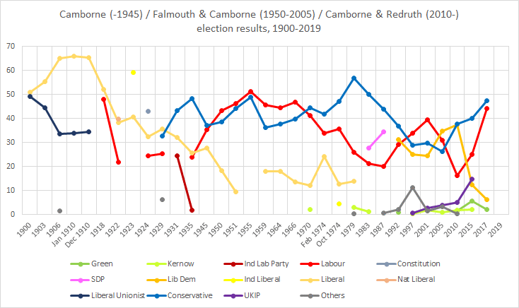 1918–1950: The Borough of Helston, the Urban Districts of Camborne, Hayle, Phillack, and Redruth, the Rural District of Redruth, in the Rural District of East Kerrier the parishes of Constantine, Mabe, and Perranarworthal, in the Rural District of Helston the civil parishes of Crowan and Wendron, and in the Rural District of Truro the parishes of Kea, Kenwyn Rural, Perranzabuloe, St Agnes, St Allen, and Tregavethan.