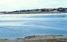 A Distant Early Warning Line site was established in 1955 and about 200 Inuit were hired to help in the construction.[32] The military presence and the services and economy this represented acted as a magnet for Inuit who had previously used the area as a temporary site for meeting, hunting, fishing and trade, and a permanent community was soon established across the bay in its current location.[32] Unlike the majority of the DEW Line radar sites which were abandoned or automated, this site which changed in 1989, known as CAM-MAIN, remains a manned operation, with about 18 people, as part of the North Warning System.[37][38]