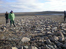 The first known people to occupy the area were the Pre-Dorset people, somewhere around 1800 BCE, about 4,000 years ago, and were seal and caribou hunters.[23] The next group to enter the area were a Paleo-Eskimo peoples known as the Dorset, who arrived approximately 500 CE. They were the first known people to have fished for the Arctic char.[24] The last of the Paleo-Eskimo people, who appeared here about 800 CE, were the Tuniit, and evidence of their living quarters can be seen close to Cambridge Bay. The Tuniit, who were known to the Inuit as giants, were taller and stronger than the Inuit, but were easily scared off.[25][26]