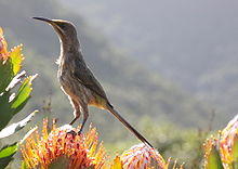 The Cape sugarbird (Promerops cafer)[2] is one of the eight bird species endemic to the Fynbos biome of the Western Cape and Eastern Cape provinces of South Africa.[3]