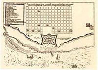 In 1536, Don Pedro de Mendoza established a settlement near the mouth of the Riachuelo de los Navíos, called Nuestra Señora del Buen Ayre. In 1580, Juan de Garay founded the city at the place which was to be the Plaza Mayor (nowadays Plaza de Mayo), naming it Santísima Trinidad while the port retained the name of the original settlement; the "Royal Fort of Don Juan Baltasar de Austria" was built in 1594. It was replaced in 1713 by a more solid construction with turrets, sentry boxes, a moat and a drawbridge that upon being completed in 1720 was given the name of "Castillo San Miguel" (St. Michael's Castle). President Bernardino Rivadavia modified the fort in 1820, and the drawbridge was replaced by a neoclassical portico. The site which was for defence purposes at that time and also seat of the Spanish and Home governments, is where Government House currently stands.[2]