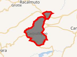 Castrofilippo (Sicilian: Castrufilippu) is a comune (municipality) in the Province of Agrigento in the Italian region Sicily, located about 90 kilometres (56 mi) southeast of Palermo and about 15 kilometres (9 mi) east of Agrigento. As of 31 December 2004, it had a population of 3,170 and an area of 18.0 square kilometres (6.9 sq mi).[3]